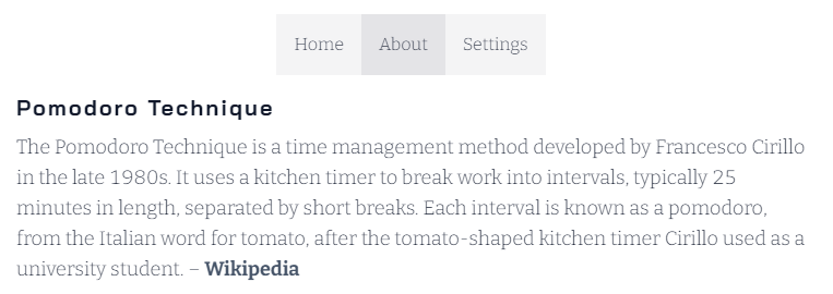 { name: 'About', icon: 'info_circle', content: PomodoroAbout },