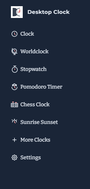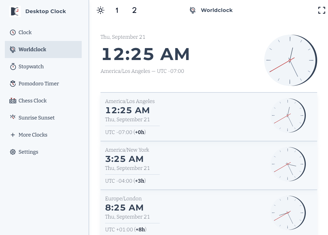 Here’s the worldclock in all its glory, with the sidebar containing all apps and the header with the worldclock icon